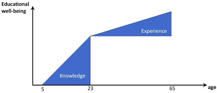 Second, as we gain experience in our career, we only occasionally require new learning. Experience builds incrementally and continuously on upfront knowledge over time, leading to ever-increasing competence.
